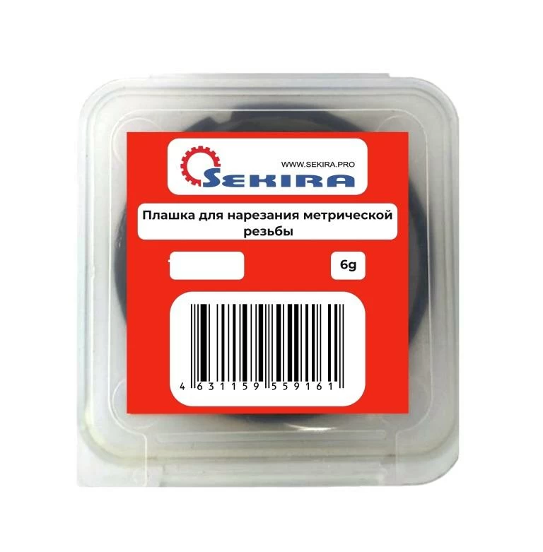 Плашка М 1,0х0,25 Р6М5 Sekira — инструмент для ручного или машинного нарезания наружной резьбы на металлических деталях цилиндрической формы. Изделие выполнено из стали Р6М5 - быстрорежущие вольфрамо-молибденовой стали. Содержание вольфрама – до 6,5%, молибдена – до 5,3%. Твердость материала составляет 60 – 62 HRC..