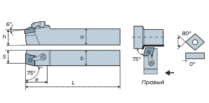 MCBNL1616H12 державка для наружного точения Deskar с сечением 16х16 используется с режущими пластинами CN**1204** (форма пластины: c-ромбическая 80°, размер: 12) для обработки металла.
