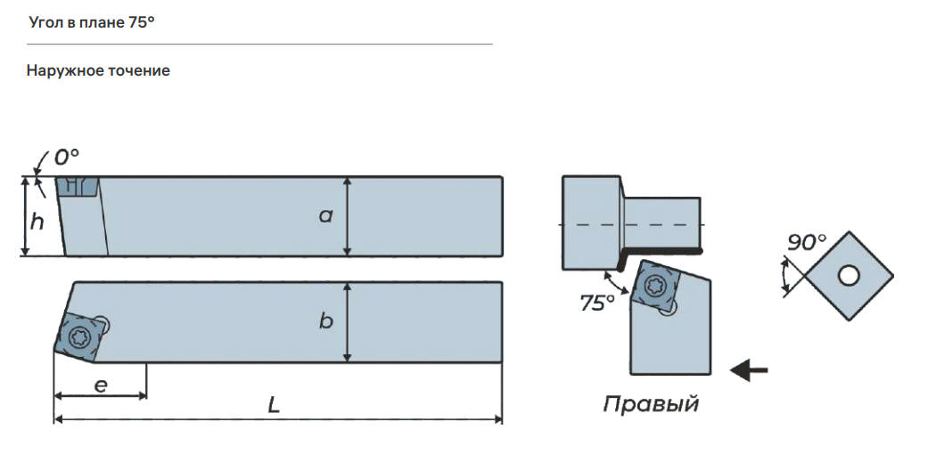 • Форма державки и угол B - 75°