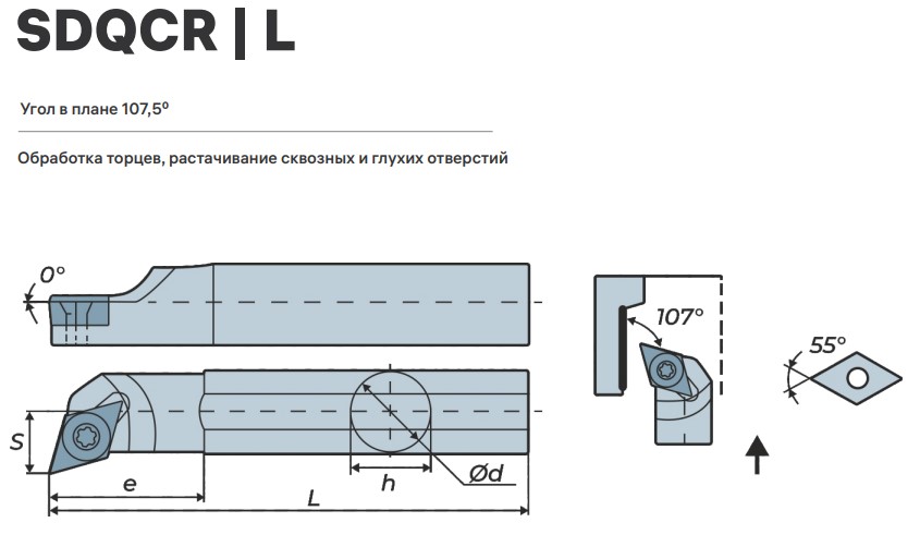 S16Q-SDQCR07 державка для внутреннего точения Deskar используется с режущими пластинами DC**0702** (форма пластины: d-ромбическая 55°, размер: 7) для обработки металла.
