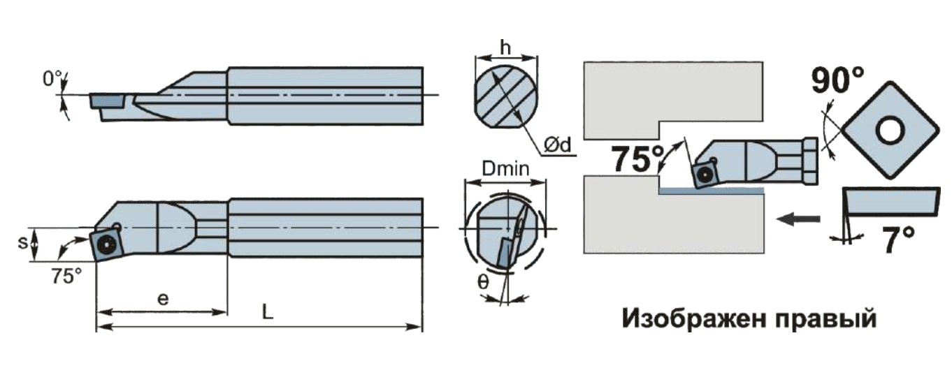 S12M-SSKCL09 DKR державка для внутреннего точения Deskar используется с режущими пластинами SC**09T3** (форма пластины: s-четырехгранная, размер: 9) для обработки металла.