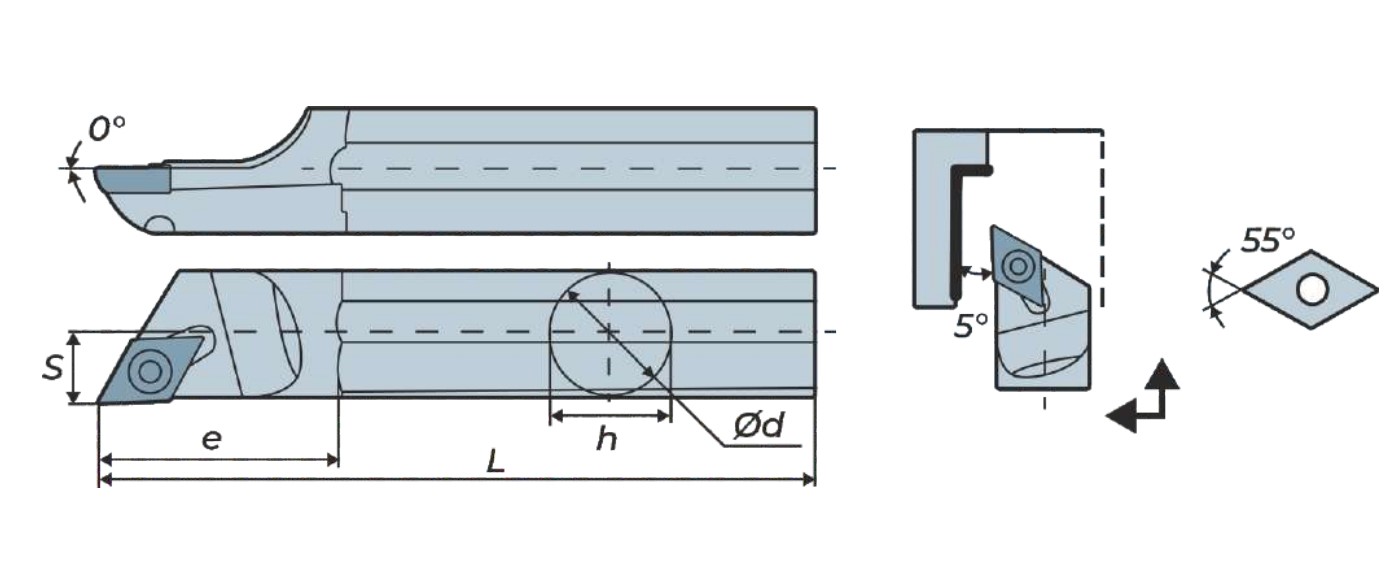 S16Q-SDXCR07 DKR державка для внутреннего точения Deskar используется с режущими пластинами DC**0702** (форма пластины: d-ромбическая 55°, размер: 7) для обработки металла.