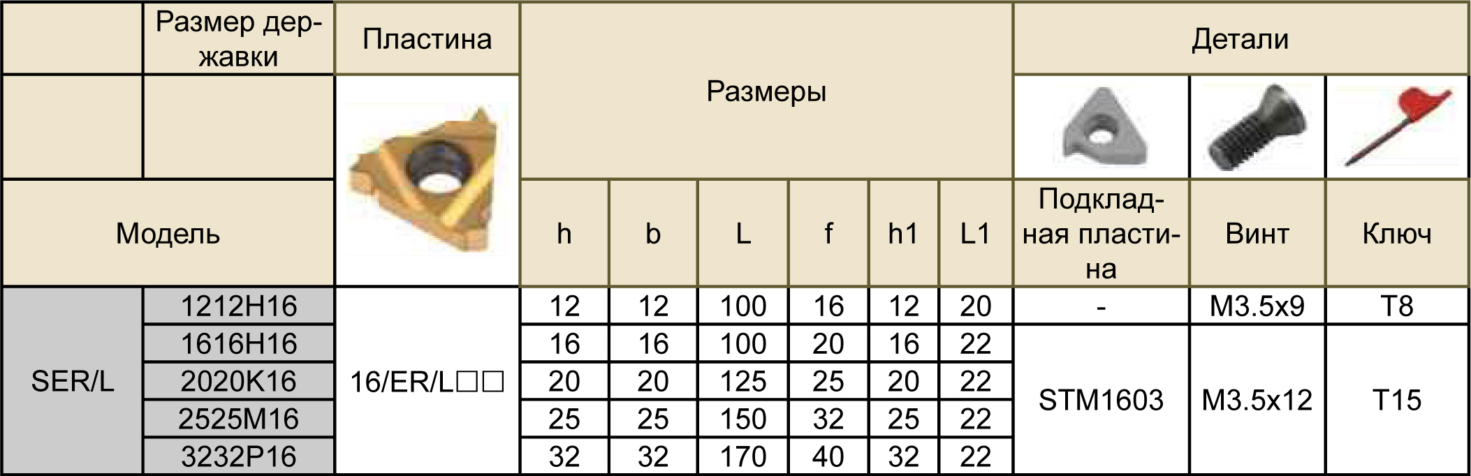 SER3232P16 державка резьбовая Deskar с сечением 32х32 используется с режущими пластинами 16ER** (размер: 16) для обработки металла.