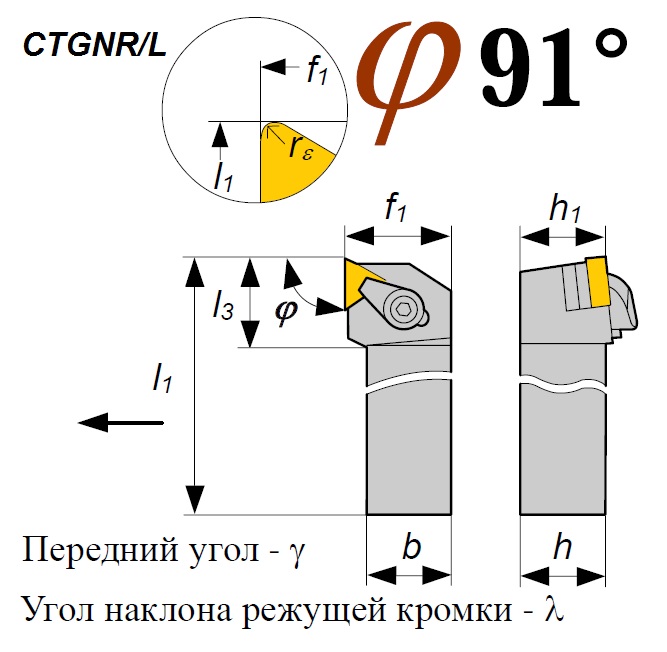 Тип державки, главный угол в плане: 90°