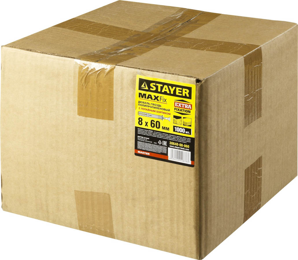Доставка инструмента Дюбель-гвоздь полипропиленовый с потайным бортиком STAYER 60 x 8 мм, 1000 шт., 30640-08-060