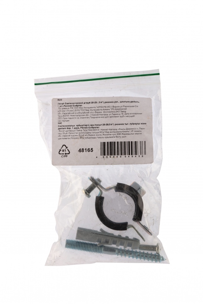 Хомут укомплектован шпилькой и дюбелем для удобства и простоты установки.