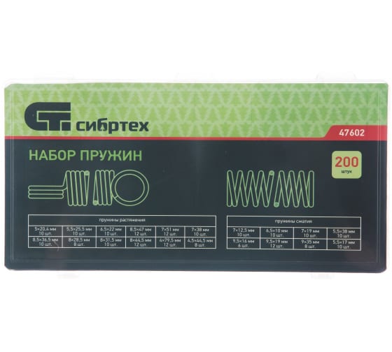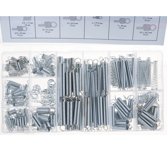 Доставка инструмента Набор пружин 5,5х17,5,5х35, 6,5х10,7х12,5, 7х19, 9х35, 9,5х16, 9,5х19 мм, 200 пр. Сибртех