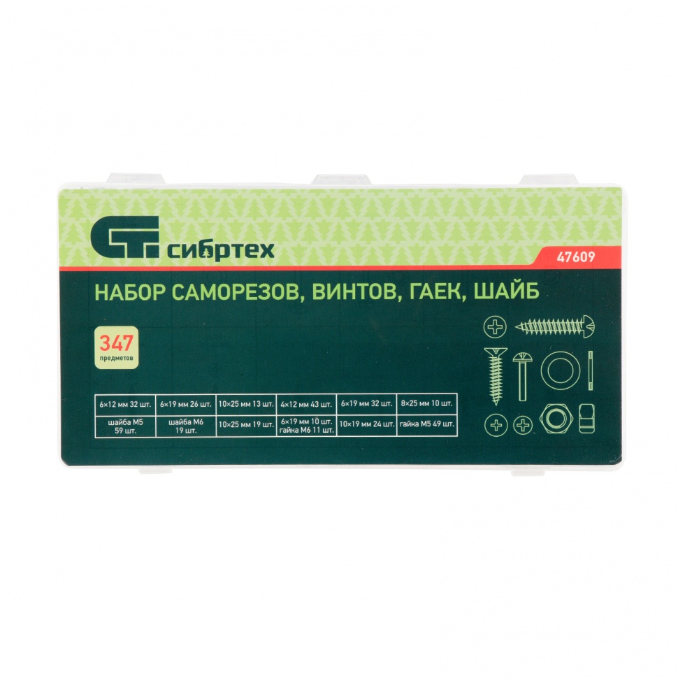Как купить Набор саморезов, винтов, гаек, шайб, 347 предмет Сибртех?