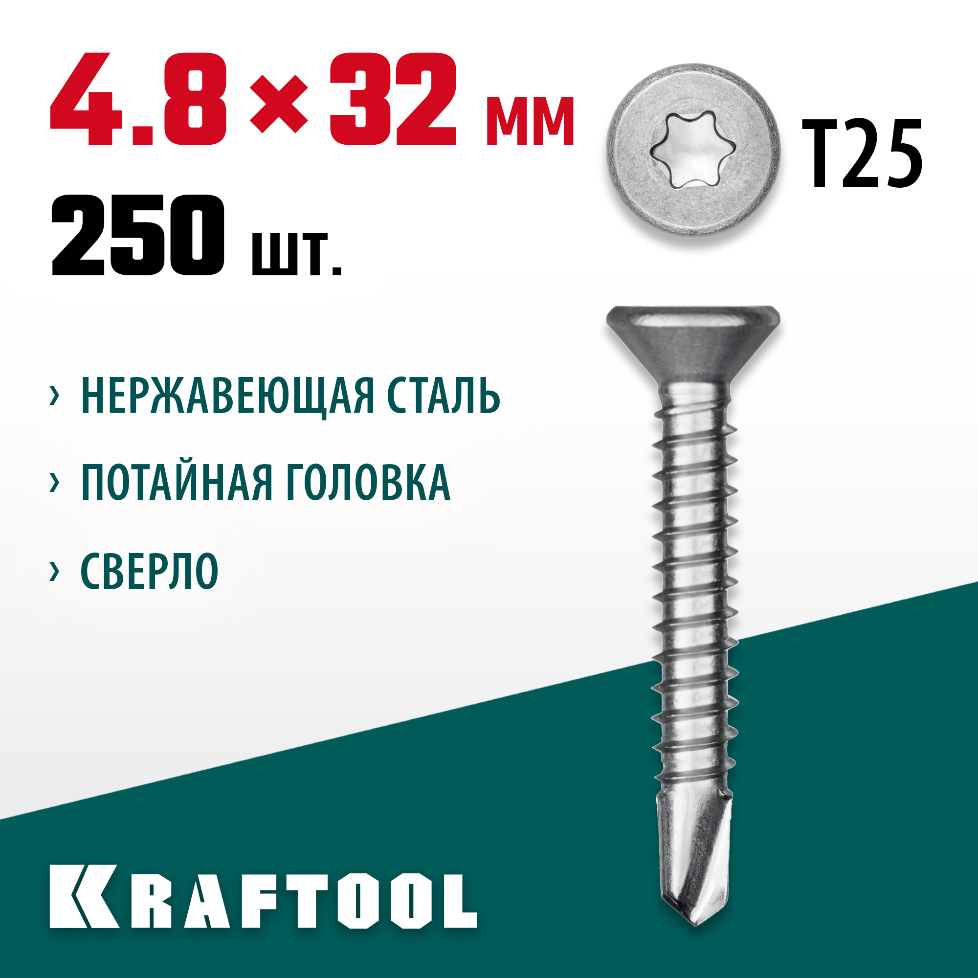 Доставка инструмента Нержавеющие саморезы НС-П с потайной головкой KRAFTOOL 300932-48-032 32 х 4.8 мм, 250 шт.