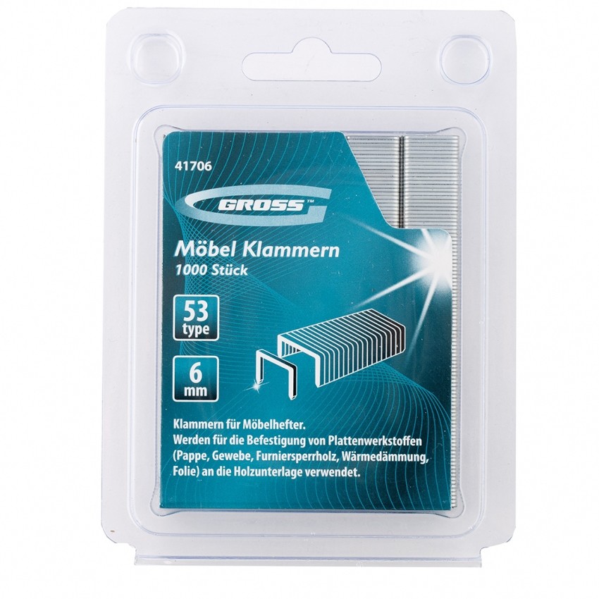 Доставка инструмента Скобы, 6 мм, для мебельного степлера усиленные, тип 53, 1000 шт Gross
