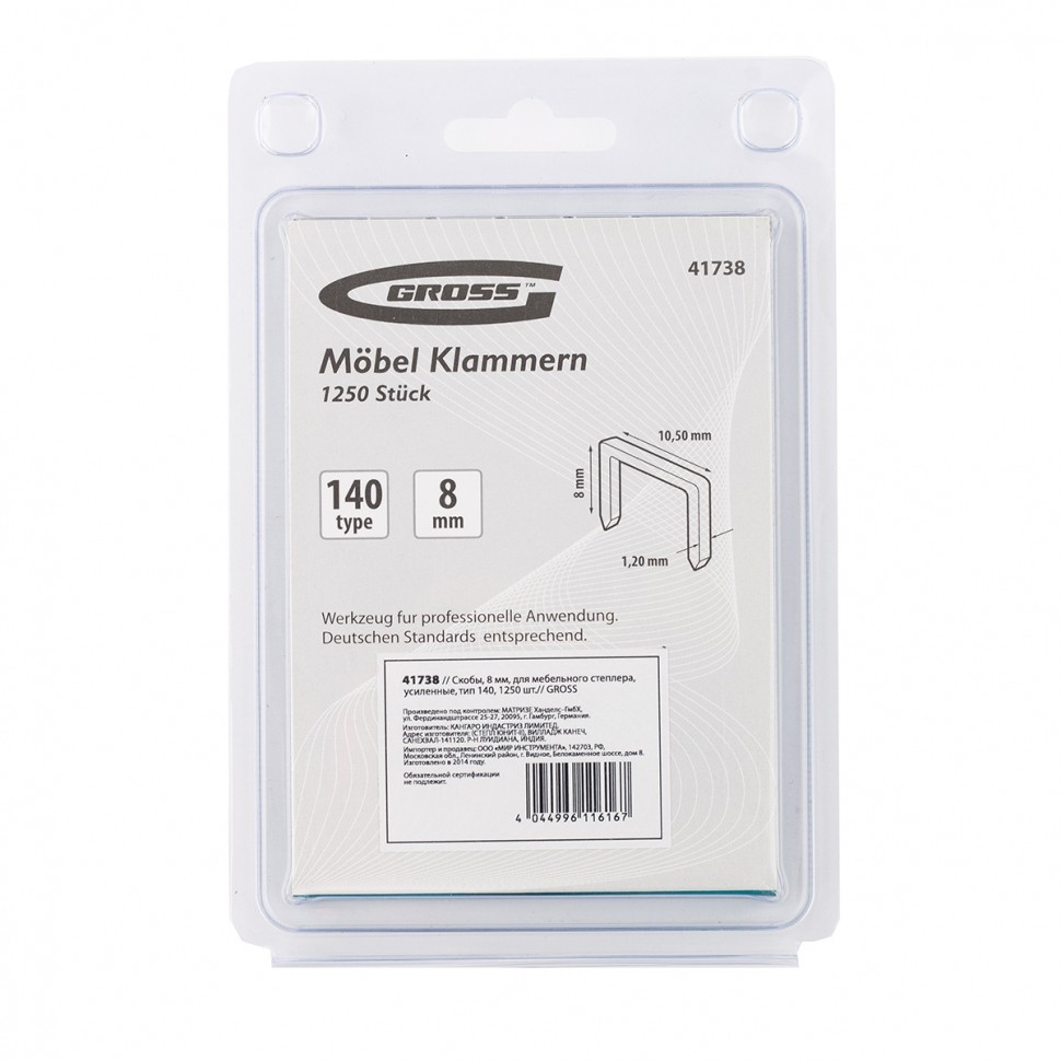 Как купить Скобы, 8 мм, для мебельного степлера, усиленные, тип 140,1250 шт Gross?