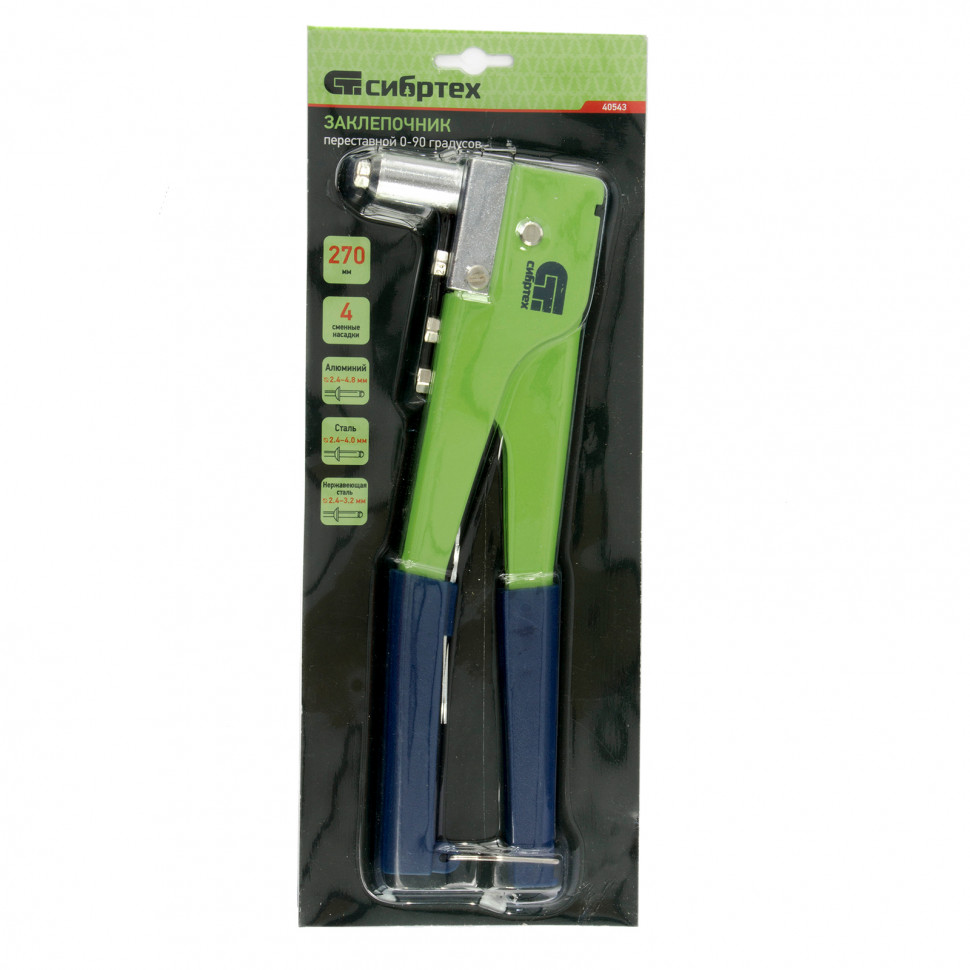Как купить Заклепочник 270 мм, переставной 0-90 град, заклепки 2,4-3,2-4,0-4,8 мм Сибртех?