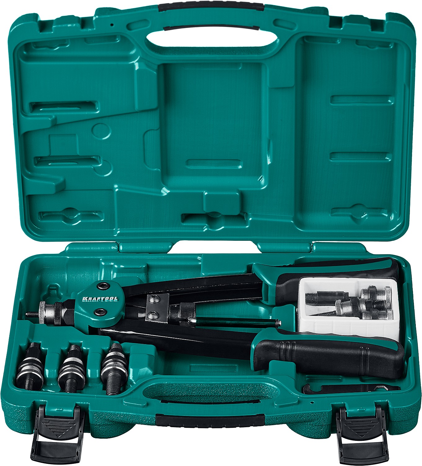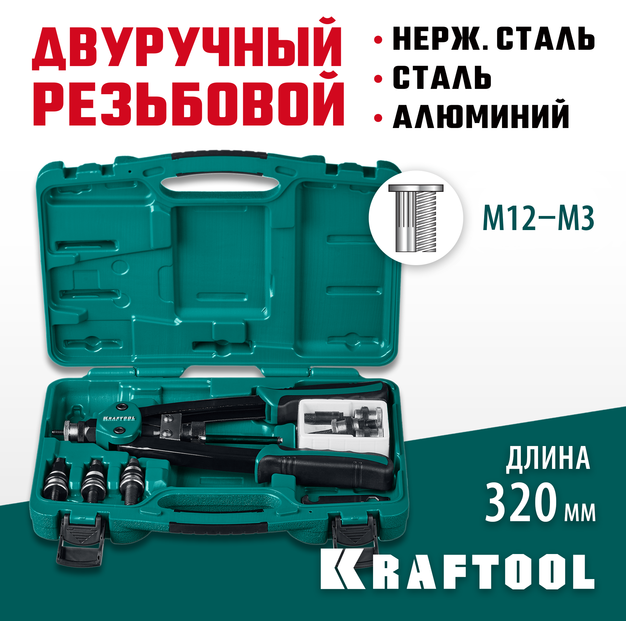 Заклепочник KRAFTOOL 31183, предназначен для установки резьбовых заклепок из алюминия, стали и нержавеющей стали. Рычажная конструкция инструмента многократно увеличивает приложенные усилия. Компактный размер повышает удобство использования. Кейс обеспечивает удобство хранения. Применяется для создания неразъемных соединений из различных материалов.
