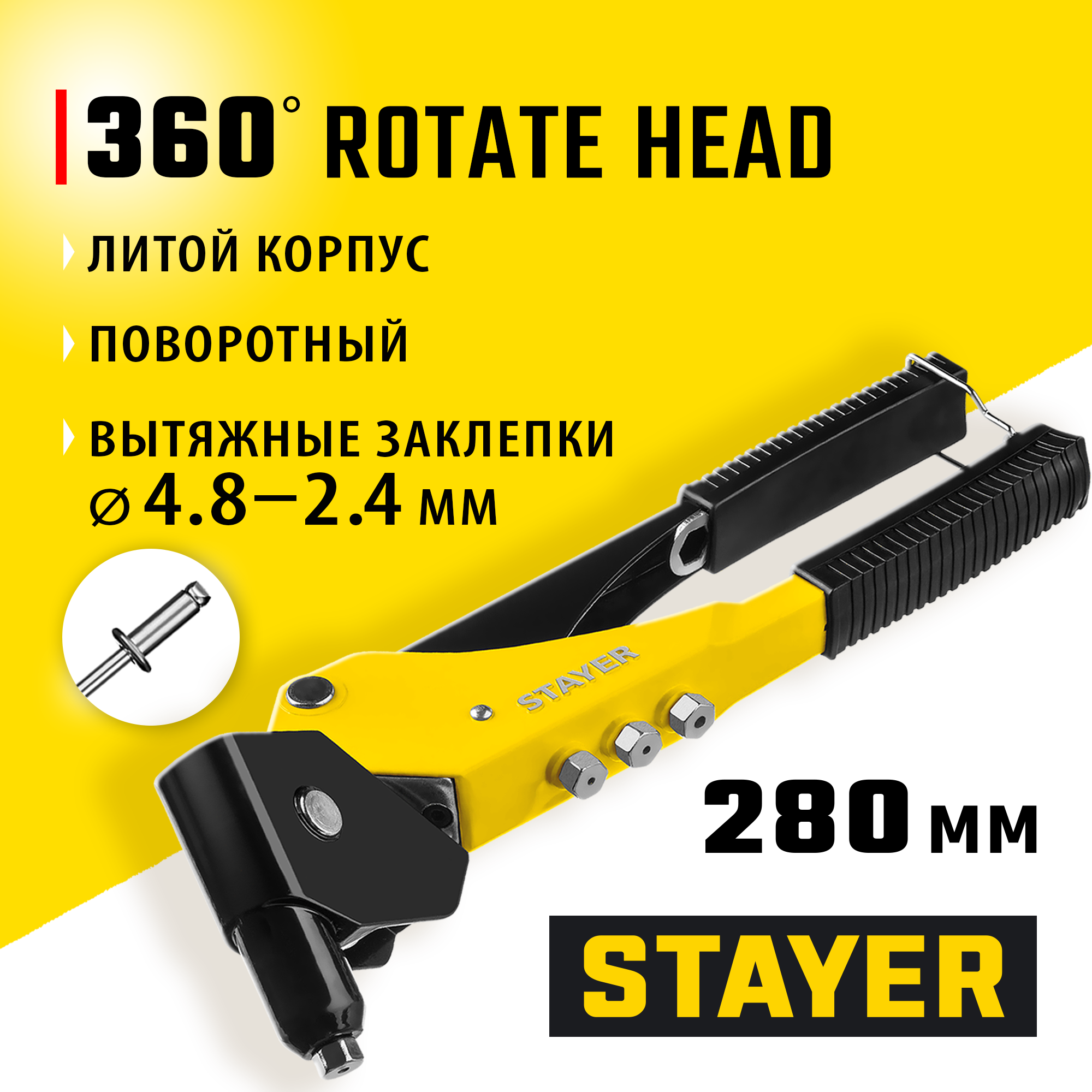 Как купить Заклепочник поворотный 3110_z01 STAYER заклепки 2,4-4,8 мм из алюминия, литой корпус 0-360°?