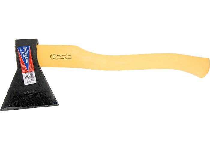 Топор выкован из цельнометаллической заготовки (марка 60Г), что полностью исключает вылет обуха. Твердость – 50 HRC. Выдерживает высокую нагрузку. Эргономичная двухкомпонентная рукоятка хорошо поглощает колебания, возникающие при ударе, не передавая их на руку. Вес с топорищем 1200 г.