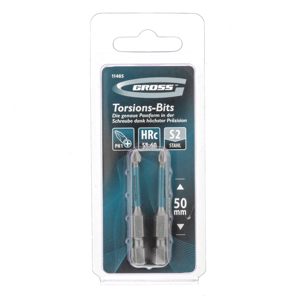 Доставка инструмента Набор бит торсионных PH1 x 50 мм, для ударных шуруповертов, 2 шт. Gross