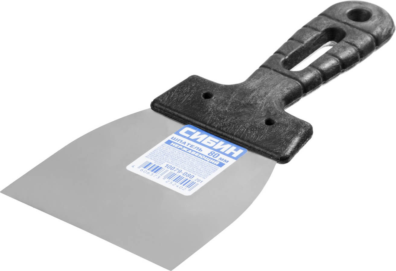 Доставка инструмента Шпатель СИБИН 80 мм, нержавеющая полотно, пластмассовая рукоятка,10079-080_z01