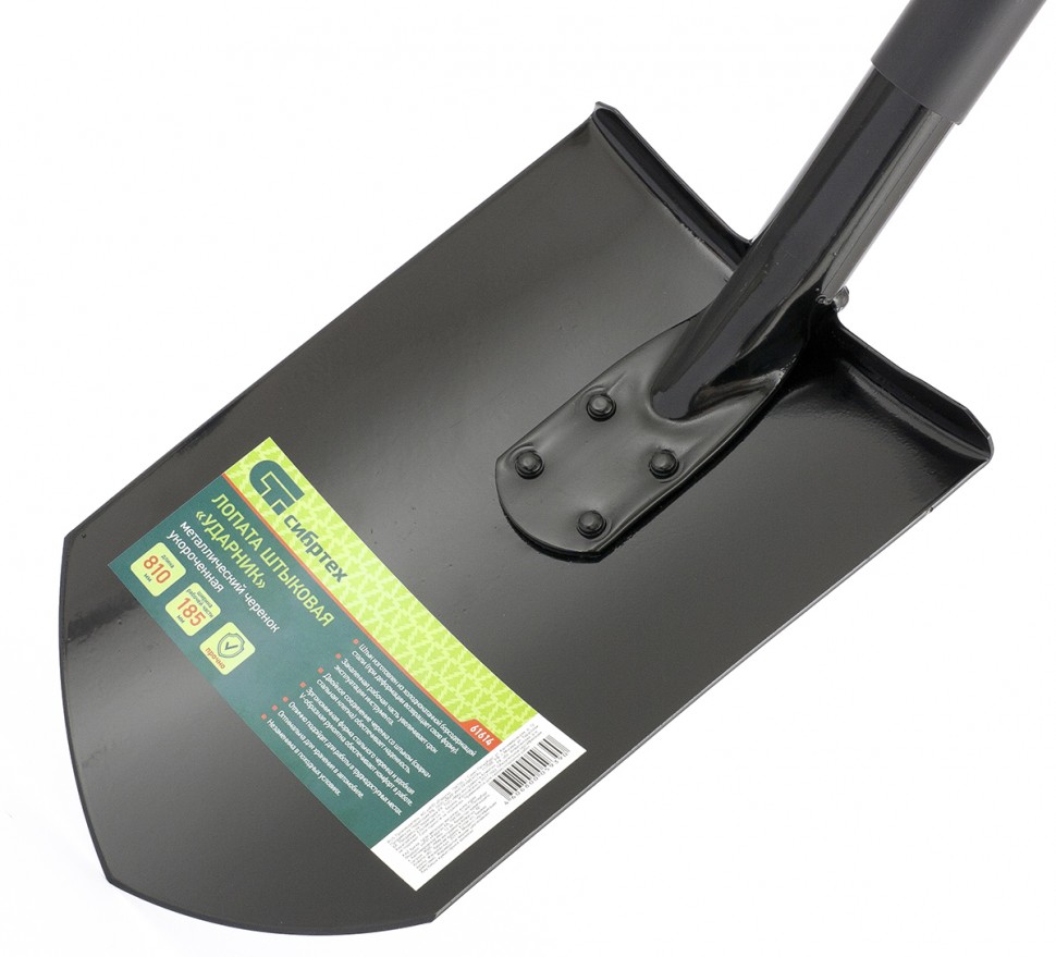 Цельнометаллическая штыковая лопата Сибртех 61614 размером 185 х 275 х 810 мм пригодится на строительной площадке и придомовом участке при выполнении земляных работ. С ее помощью можно перекопать и взрыхлить землю, выкопать яму, произвести погрузку сыпучих материалов. Загнутая верхняя кромка рабочей части способствует легкому проникновению в грунт, поэтому лопатой удобно работать.ПреимуществаПолотно изготовлено из очень упругой борсодержащей стали RUUKKI, поэтому даже при сгибании оно возвращает первоначальную форму.Клиновидная форма рабочей части придает лопате прочность на изгиб.Благодаря закалке полотно обладает высокой твердостью, а следовательно и ресурсом.Цельнометаллическая конструкция обеспечивает долговечность и надежность лопаты.Черенок и полотно покрыты порошковой эмалью, таким образом достигается высокая коррозийная стойкость лопаты.Пластиковая рукоятка повышает удобство работы, особенно при погрузке материалов.Надежность фиксации черенка обеспечивается за счет двойного крепления — сварное соединение усилено заклепками.Небольшая длина лопаты 810 мм позволяет работать в ограниченном пространстве, например, в теплице и транспортировать лопату в багажнике автомобиля.