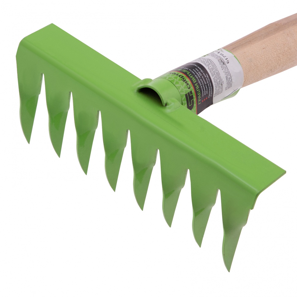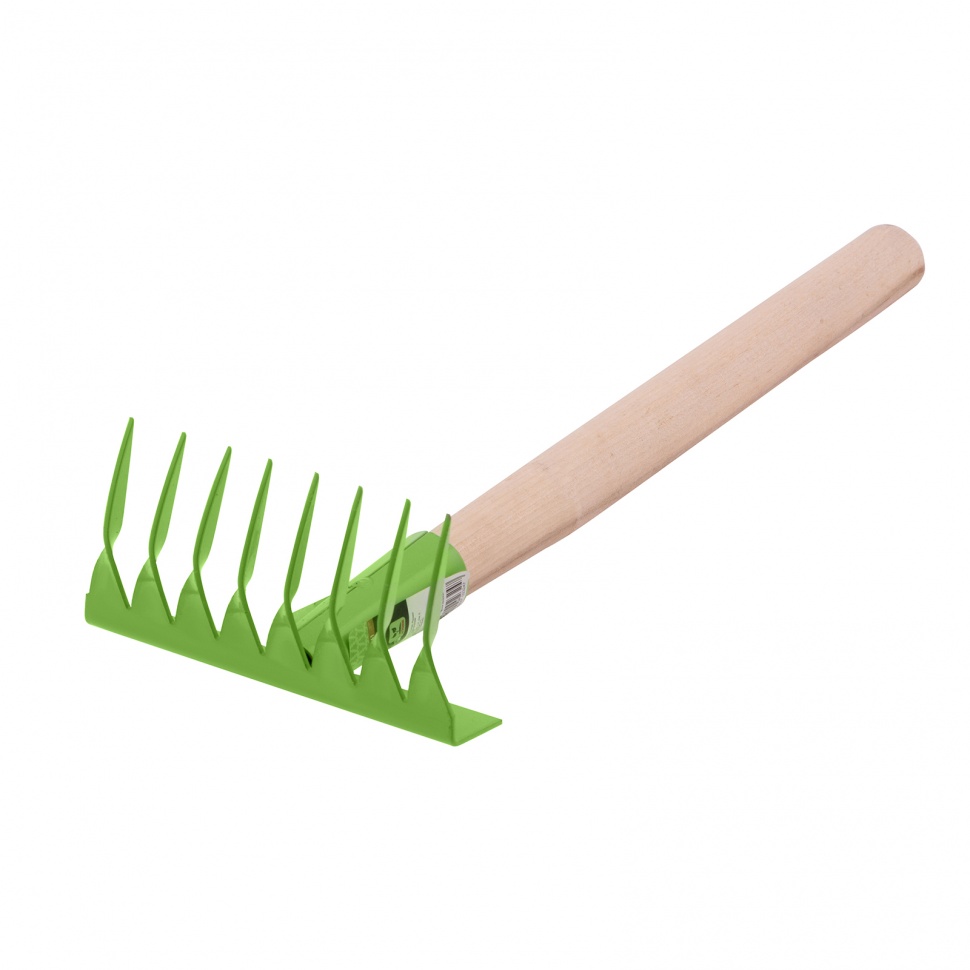Грабли витые 8-зубые Сибртех АГРОНОМ 61761, 160 х 390 мм, стальные, с деревянной рукояткой, служат для садовых работ на небольших участках земли. Они используются для рыхления грунта, подходят также для уборки мусора с грядок и клумб. Инструмент полностью готов к эксплуатации, т.к. поставляется в сборе с деревянной рукояткой.ПреимуществаУтолщенные витые зубья с заостренными концами эффективно разбивают земляные комья, обеспечивая качественную аэрацию почвы.Рабочая часть с тулейкой выполнены из конструкционной углеродистой стали, поэтому грабли устойчивы к износу.Грабли отличаются хорошей сопротивляемостью нагрузкам и рассчитаны на долгую эксплуатацию.Покрытие из порошковой эмали защищает от коррозии, а значит, грабли прослужат долго.В верхней части рукоятки предусмотрено отверстие для подвесного хранения.