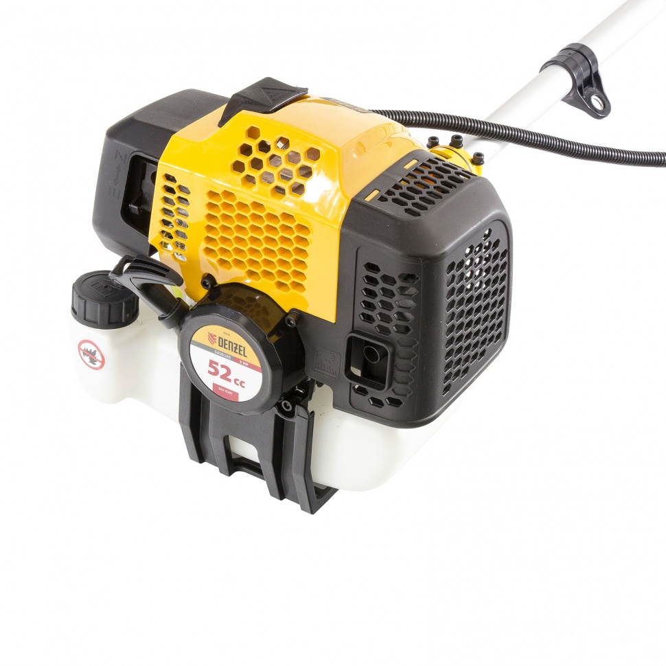 Бензиновый триммер Denzel DGT 520 имеет самый мощный двигатель в линейке - 3 л. с., но при этом он легкий и экономичный. А его детали покрыты хромом, что значительно увеличивает ресурс инструмента.