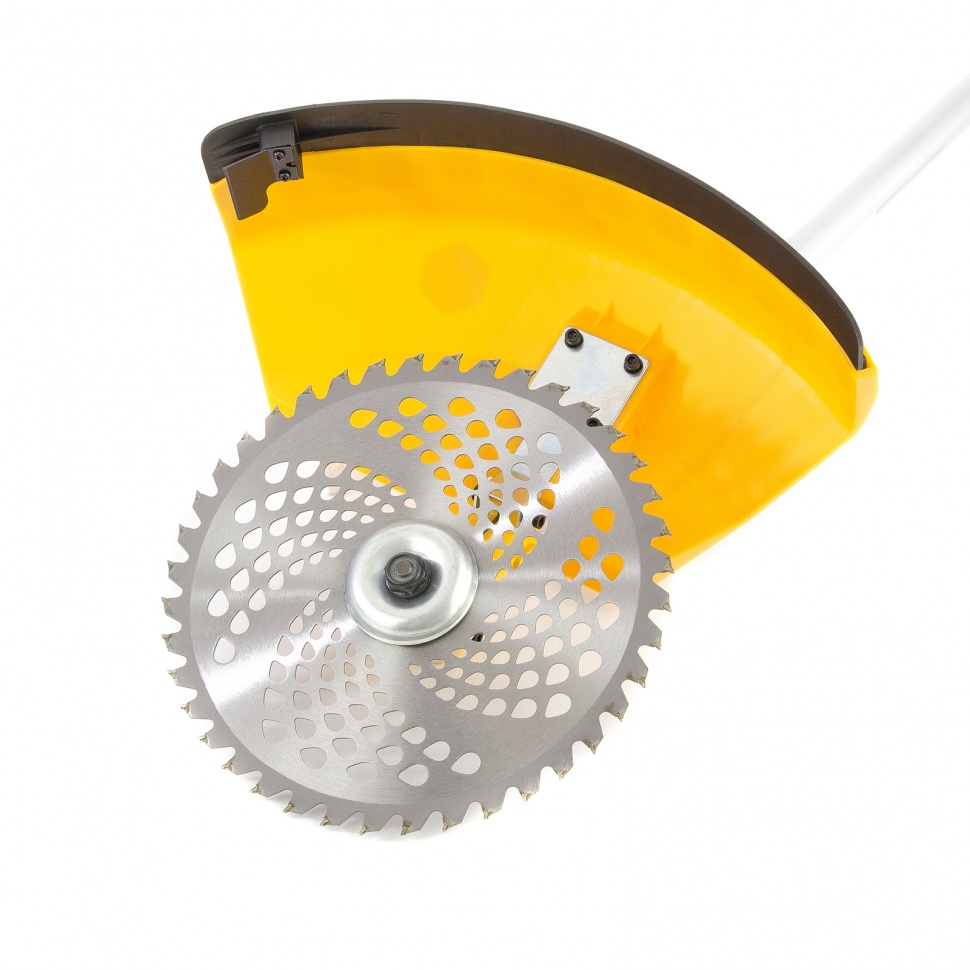 Благодаря усиленной катушке из полиамида Вы легко справитесь с травой любой густоты и подравняете газон даже в недоступных для колесной косилки местах. А с помощью пильного диска легко избавитесь от молодой поросли деревьев и кустарника.