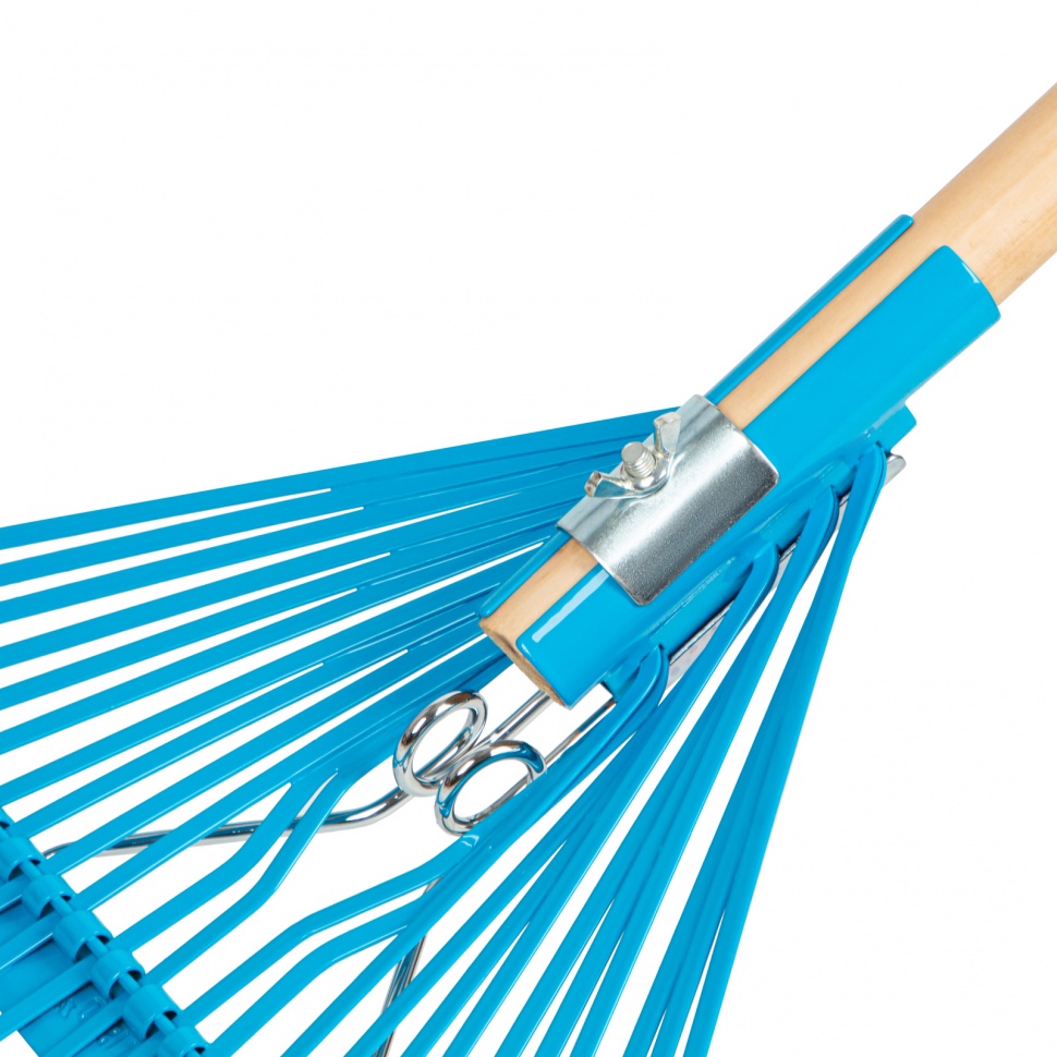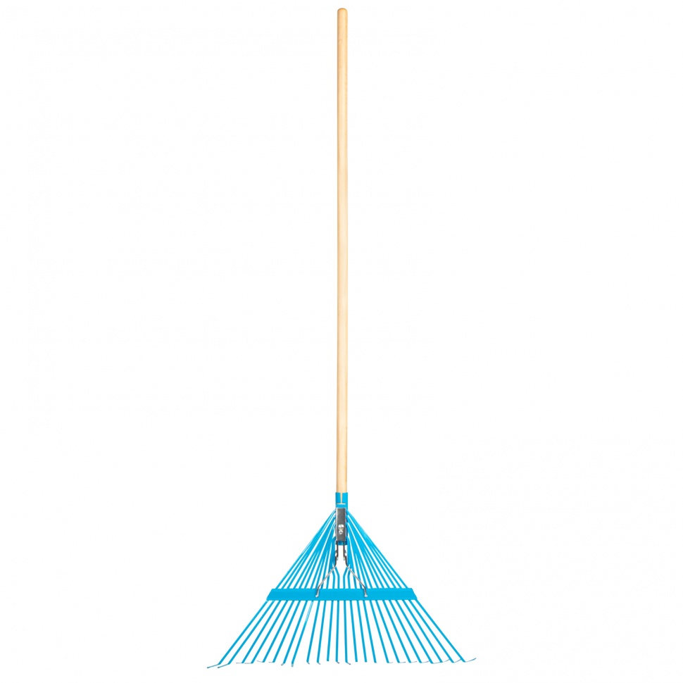Грабли веерные стальные Palisad LUXE 617905, 540 х 1450 мм, с 24 плоскими зубьями и лакированным черенком, предназначены для очистки от листвы и мусора газонов, придомовых территорий и грядок. Незаменимы на дачном участке. Прямая рабочая кромка обеспечивает высокую эффективность при выполнении уборочных работ.ПреимуществаГрабли изготовлены из рессорно-пружинной стали и покрыты порошковой эмалью, поэтому они долговечны и не боятся коррозии.Поперечная планка повышает прочность инструмента и его устойчивость к нагрузкам.Грабли поставляются в сборе с лакированным черенком, обеспечивающим комфорт в работе.