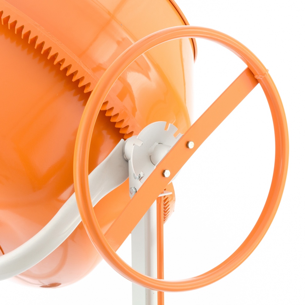 Усиленная рама обеспечивает устойчивость, а прочные колеса позволяют легко транспортировать бетоносмеситель по строительной площадке.
