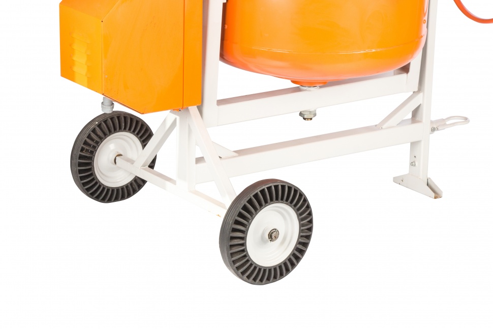 Два больших колеса позволяют легко перемещать бетоносмеситель по строительной площадке.