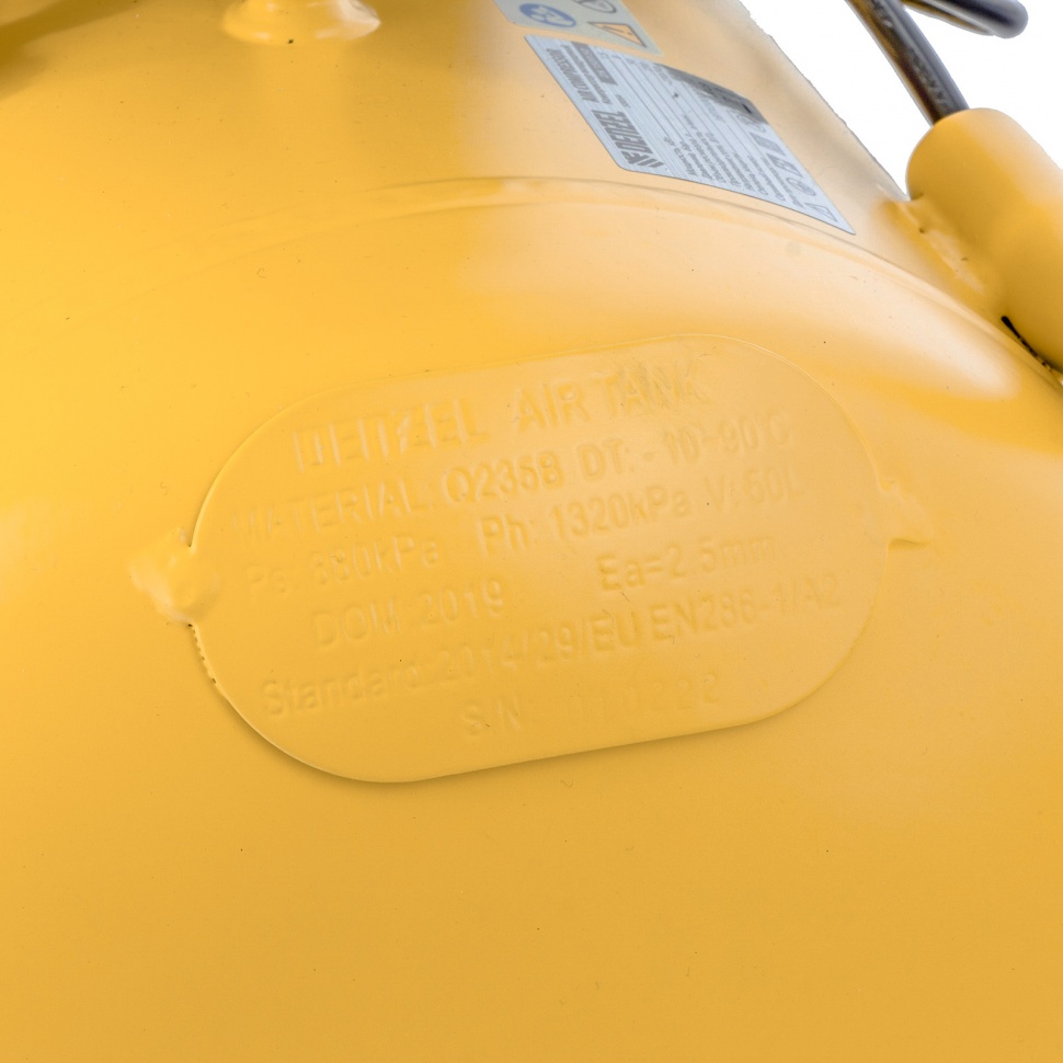 Компрессор способен производить 230 л/мин сжатого до 8 атм воздуха, который нагнетается в ресивер общим объемом 50 литров.