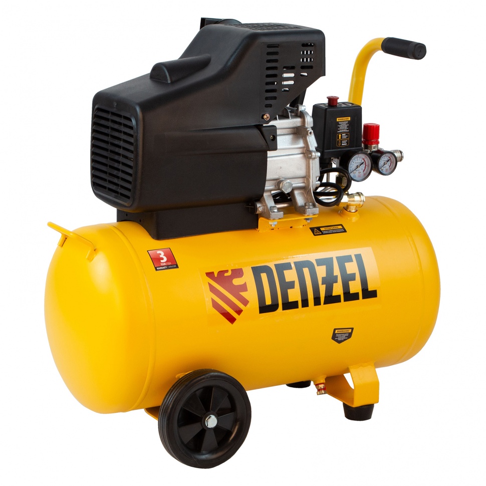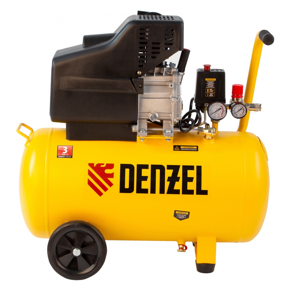 Как купить Компрессор воздушный, прямой привод DC1500/50, 1.5 кВт, 50 литров, 220 л/мин Denzel?