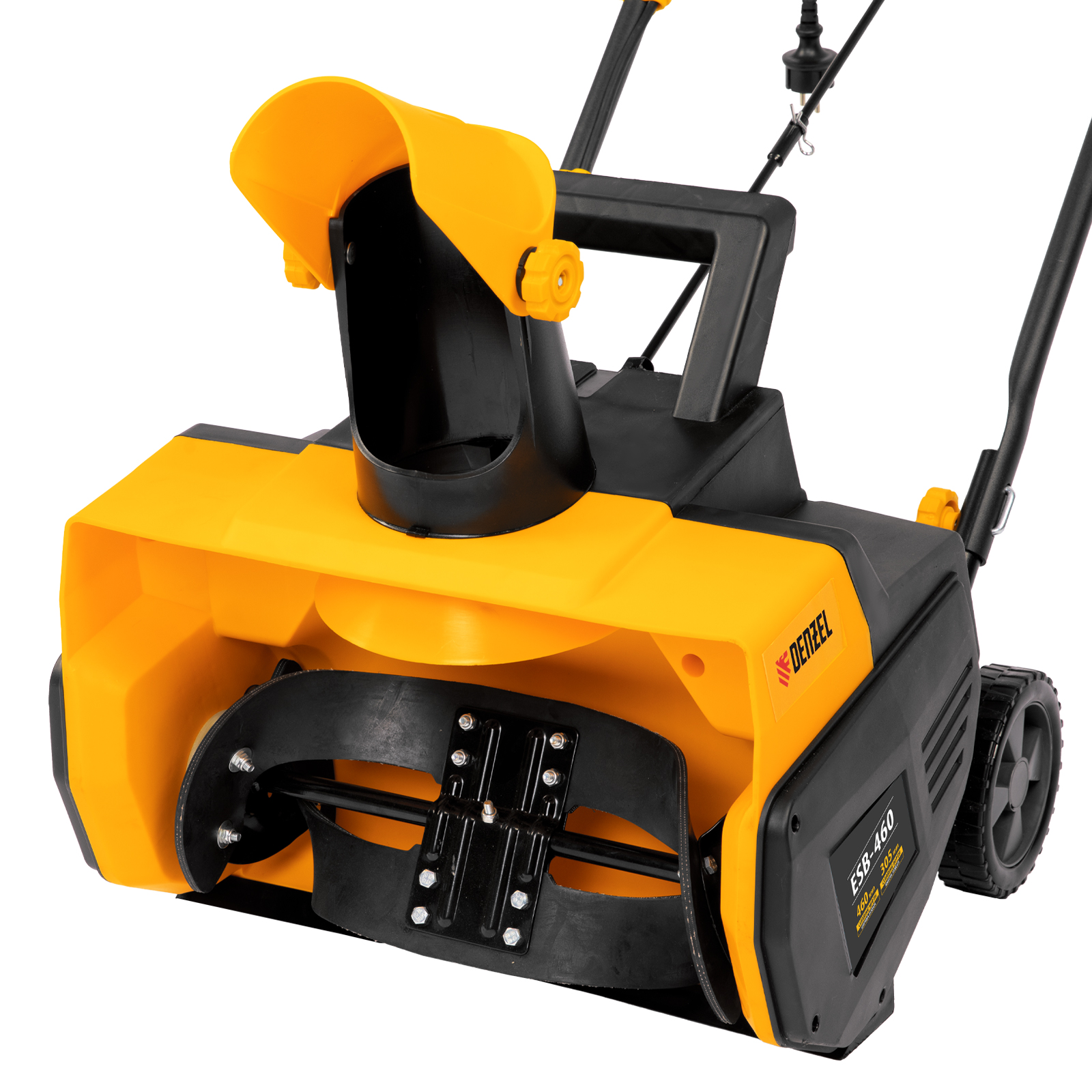 Электрическая снегоуборочная машина Denzel ESB-460 мощностью 2 кВт предназначена для уборки легкого снега на ровных поверхностях: площадках, парковках, дорожках, тротуарах. Проста в управлении, не требует сложного технического обслуживания. Машина пригодится для уборки придомовой территории и загородного участка.ПреимуществаНадежность — медная обмотка двигателя обеспечивает стабильную работу даже при интенсивном использовании.Встроенная система защиты — двигатель автоматически отключается при перегрузке, что предотвращает его выход из строя.Высокое качество исполнения — прочный шнек из армированной резины устойчив к деформациям и не повреждает деликатные покрытия очищаемых поверхностей.Двойная LED-фара — уборке снега не помешает даже темное время суток.Безопасность — двойная изоляция токопроводящих элементов защищает пользователя от электротравм.Удобное управление — регулировка положения выпускного желоба и угла наклона дефлектора позволяет установить желаемое направление выброса снега и его дальность (до 6 м).Экологичность — машина работает без шума и вредных выхлопов.Комфортная работа — мягкая рукоятка с термоизолирующим покрытием из вспененного материала эффективно поглощает вибрации и позволяет работать без перчаток.Удобное перемещение — снегоуборочная машина имеет компактные размеры, на корпусе имеется ручка для транспортировки.