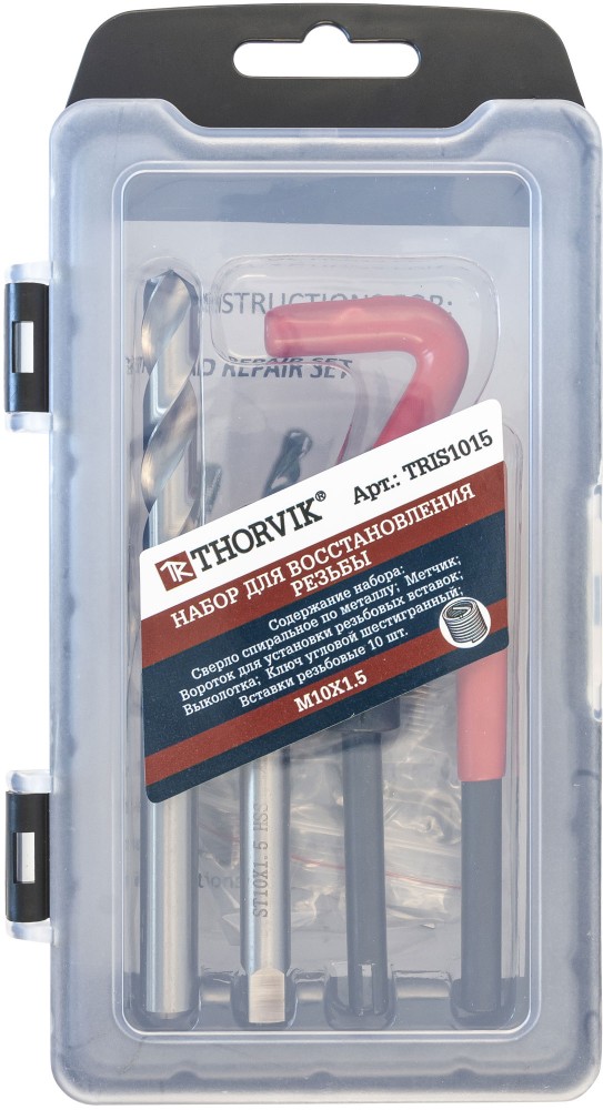 Набор для восстановления резьбы M10x1.5, 15 предметов, THORVIK, арт: TRIS1015