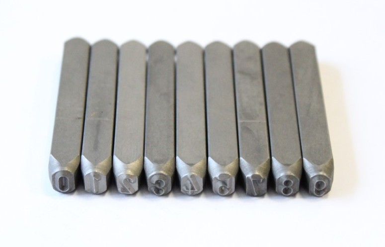 Ударное цифровое клеймо применяют для нанесения цифр с высотой шрифта от 2 до 12 мм при маркировке металлических изделий. Набор цифровых клейм состоит из 10 клейм с арабскими цифрами от 0 до 9. Набор клеймо цифра соответствует ГОСТу 25726-83.