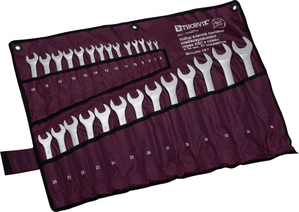 Доставка инструмента Набор ключей гаечных комбинированных серии ARC в сумке, 6-36 мм, 27 предметов, THORVIK
