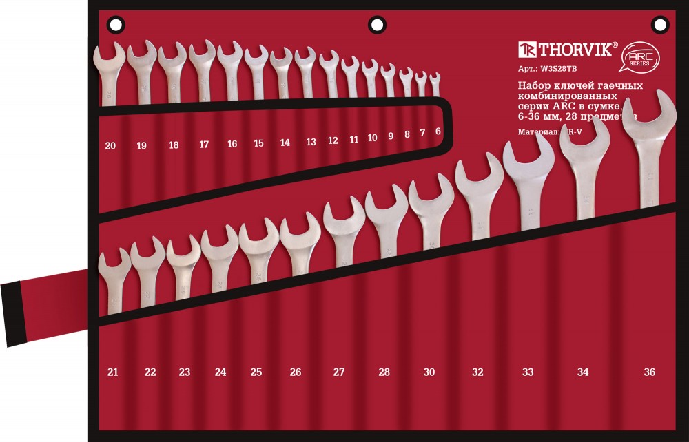 Доставка инструмента Набор ключей гаечных комбинированных серии ARC в сумке, 6-36 мм, 28 предметов, THORVIK