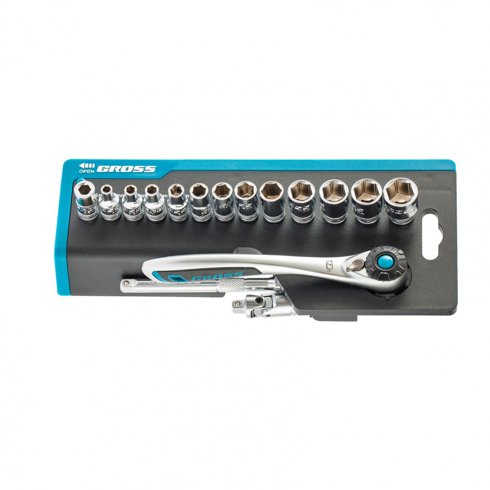 Как купить Набор торцевых головок, трещотка 120 зубьев, 36 пред., 1/4", CrV Gross?
