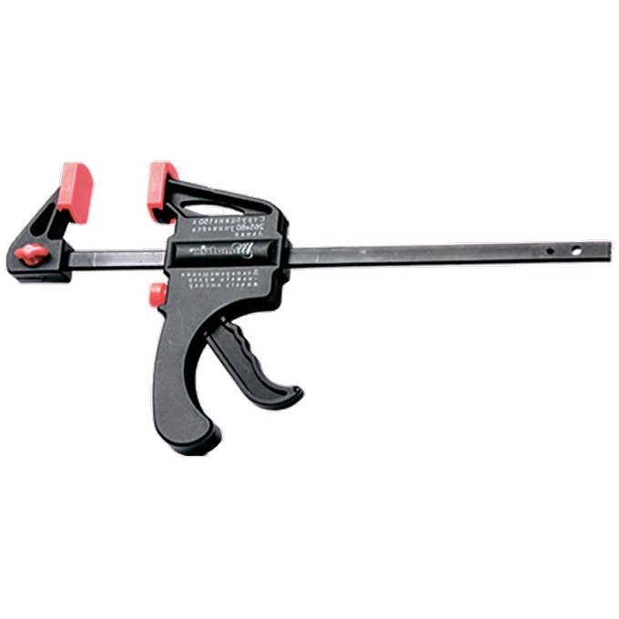 Универсальная F-образная быстрозажимная струбцина Matrix 20562, 200 х 315 х 45 мм, в пластиковом корпусе, используется в столярном деле. Позволяет быстро фиксировать заготовки с целью их соединения или обработки — склеивания, сверления, шлифовки, пиления и других видов работ. Подвижная губка перемещается вдоль штанги при помощи пластинчатого механизма, а фиксатор препятствует разжиманию струбцины. Компактный размер упрощает работу с инструментом.ПреимуществаНаправляющая изготовлена из стали и устойчива к нагрузкам, поэтому выдерживает значительные усилия при сжатии предметов.Рабочие элементы выполнены из ударопрочного пластика и обладают высокой механической стойкостью, что увеличивает срок службы инструмента.Защитные накладки на губках предохраняют зажимаемые детали от повреждений.Опорную губку можно установить на противоположный конец штанги, после чего использовать струбцину на разжим.
