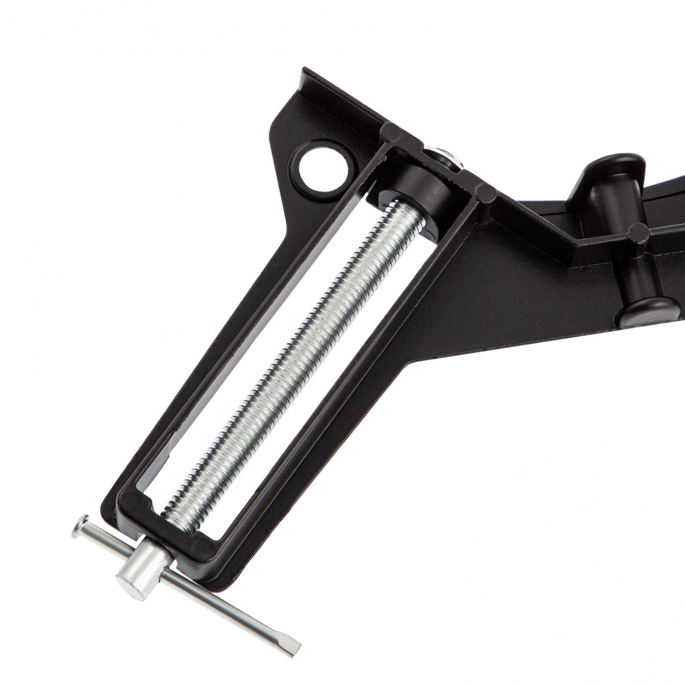 Алюминиевая угловая струбцина Sparta 203205 позволяет фиксировать под прямым углом детали шириной до 75 мм. Стальные винты и металлические губки обеспечивают надежный зажим. Струбцину используют при проведении профессиональных и бытовых столярных работ.ПреимуществаКорпус выполнен из алюминиевого сплава, что позволило снизить вес конструкции.Оцинкованные винты не боятся коррозии, что увеличивает срок службы инструмента.Благодаря крупной червячной резьбе винты имеют плавный ход и обеспечивают точную фиксацию деталей.
