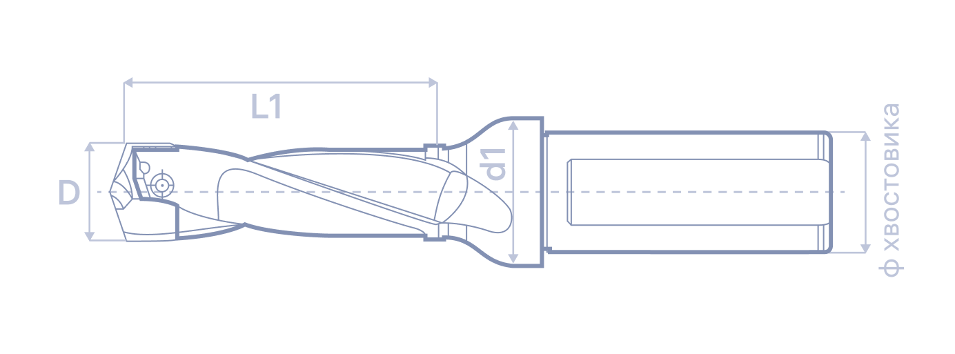 Корпус сверла общую длину 65 мм. Глубина обработки 5xD.