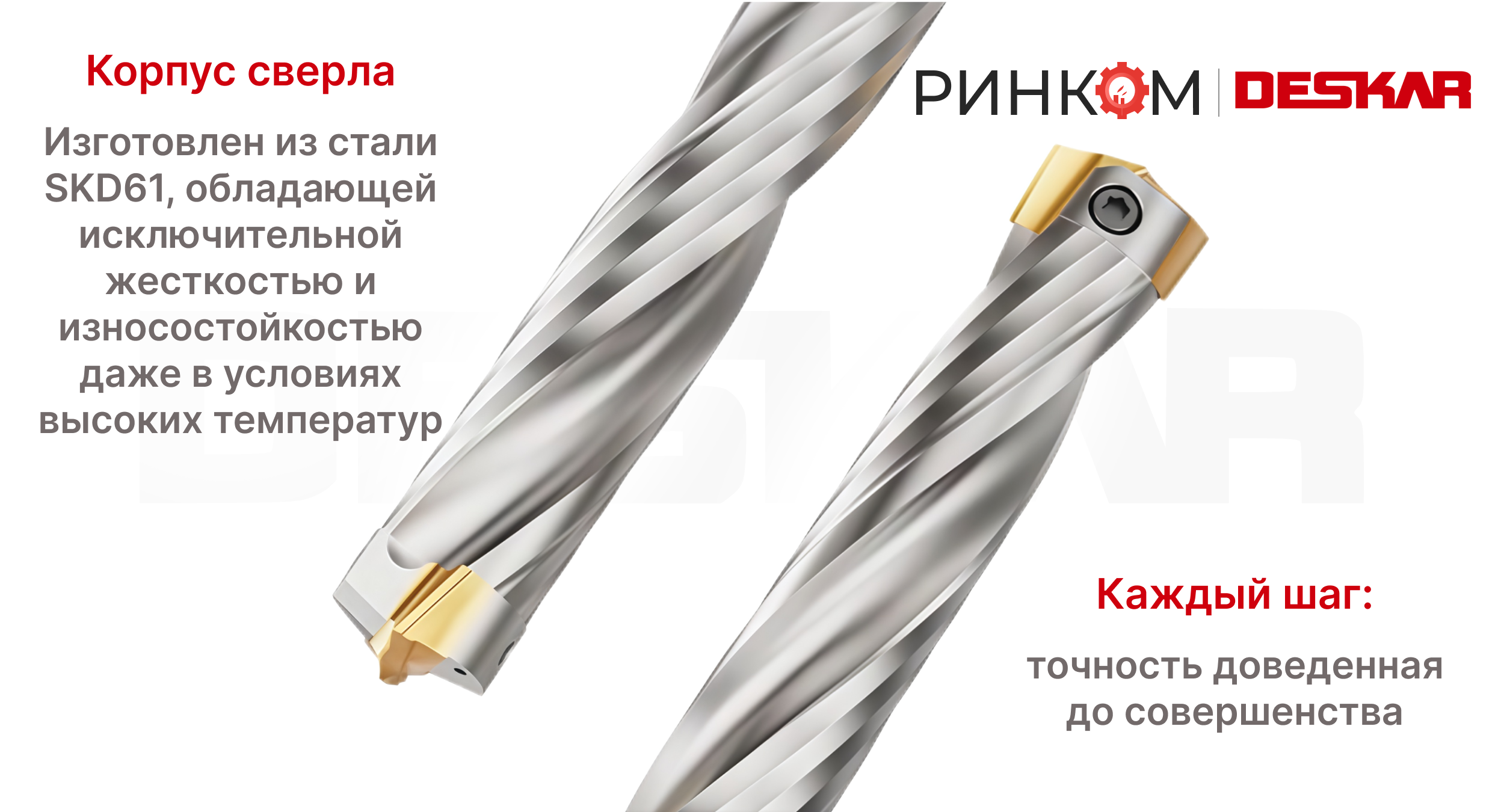 Сменные головки - изготавливаются из твердого сплава с нанесением износостойких покрытий, что увеличивает срок службы и позволяет работать с заготовками на более высоких режимах резания по сравнению со корпусными сверлами с механическим креплением пластин.