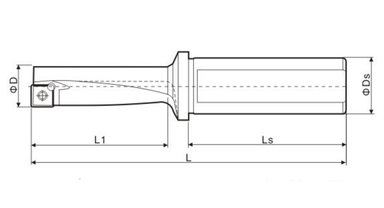 Корпус сверла общую длину 30 мм. Глубина обработки 3xD.